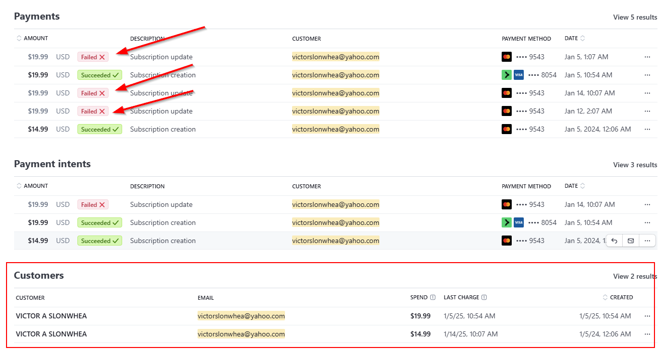 - Review the customer's transaction status in Stripe > cnaZone. Under Customers, verify if there is more than one subscription.
