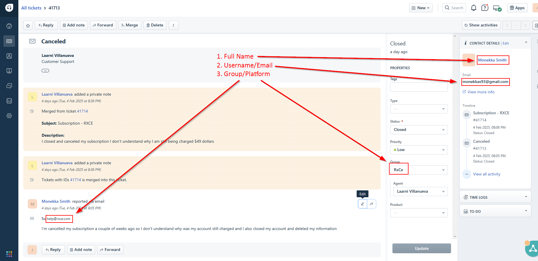 - Gather all the information you can from the HelpDesk ticket. It is always best to try and resolve a ticket concern on the first contact rather than having a back-and-forth exchange of information whenever possible. That said, the highest priority is to come up with an accurate and absolute resolution, so don't hesitate to ask for more information when needed. The Full Name, Username/Email, and Group/Platform are crucial information to search and pull up the customer's account.